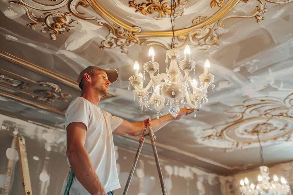 Careful hand-cleaning for chandeliers and delicate fixtures—restoring brilliance without dama